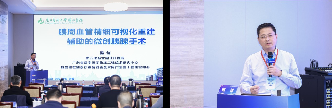 杨剑教授在《胰周血管精细可视化重建辅助的微创胰腺手术》报告中,系统阐释了基于影像数据的胰周血管三维可视化重建技术原理与操作流程,重点演示了该技术如何精准指导微创胰腺手术的术前规划与术中导航,并通过临床实践数据验证了其在提升手术安全性、降低血管并发症方面的显著优势与推广价值。