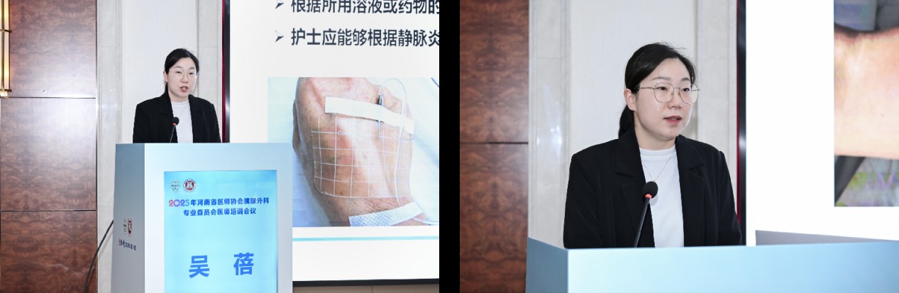 吴蓓教授精彩分享了《新型辅料在静脉炎及输液外渗中的应用》,她通过详实的案例展示了“小辅料,大作为”的护理智慧,让新型辅料成为静脉治疗的“隐形守护”,为临床常见难题提供了创新性的解决方案,成为提升静脉治疗质量的重要利器。
