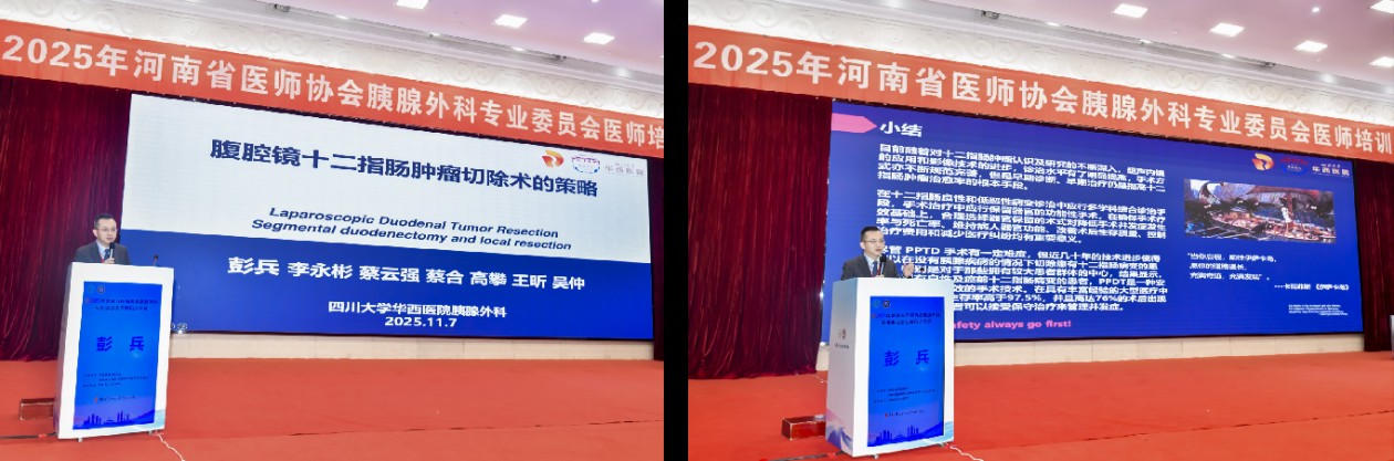 彭兵教授精彩汇报了《腹腔镜十二指肠肿瘤切除术的策略》,他深入浅出地阐述了手术核心原则,抽丝剥茧般地演示了关键步骤与应对技巧,并分享了独到的临床决策经验,为与会者带来了深刻启发。