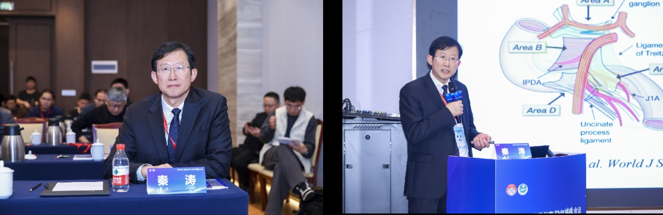秦涛教授在《十二指肠解螺旋在胰十二指肠全系膜切除中的应用》报告中,基于详实的本中心数据,深入阐释了“十二指肠解螺旋”这一创新技术的解剖学原理与操作理念,详细演示了其在实现胰十二指肠全系膜完整切除中的关键步骤与手术要点,并通过临床随访数据证实了该技术对改善肿瘤根治性与手术安全性的显著优势。