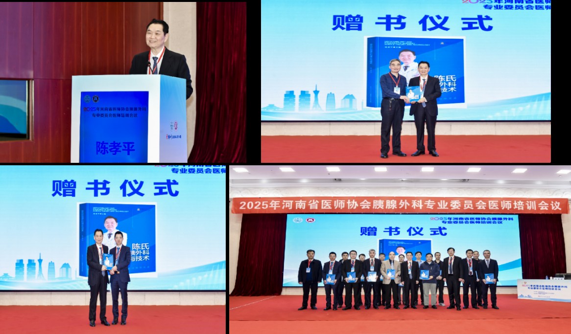 大会第三部分迎来激动人心的高潮,我国肝胆胰外科领域的泰斗——中国科学院陈孝平院士亲临现场。陈院士结合自己数十年的奋斗历程,向在场的青年医师们发表了情真意切的寄语。他勉励后学要“戒骄戒躁,踏实肯干,低调做事”,并始终牢记医者初心,将“造福人民”作为毕生追求的崇高使命,字字珠玑,令人振奋。在主会场议程的压轴环节,陈孝平院士亲自向来自全国各地的肝胆胰外科同仁赠送了其心血力作——《陈氏肝胆胰外科理论与技术》,并亲切地与大家合影留念。这一刻,不仅传递着知识的薪火,更闪耀着精神传承的光芒,为上午主会场的会议画上了圆满而有力的句号。