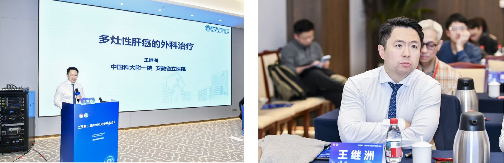 在第一部分学术环节,河南省人民医院余海波教授、河南医药大学第三附属医院李韶山教授与郑州人民医院苗书斋教授联袂主持,引导讨论层层深入。随后,陆军军医大学新桥医院郑璐教授、上海交通大学医学院附属仁济医院张建军教授、华中科技大学同济医学院附属同济医院陈琳教授依次登台,分别围绕《侵及IVC肝癌的微创切除策略及功能保留探讨》、《肝移植前沿技术创新成人LDLT小体积移植物的临床应用》及《肝癌转化治疗共识与争议》三大前沿议题,展开了系统而深入的报告。讲者们不仅分享了肝癌微创切除与转化治疗领域的最新策略与思考,更展示了成人活体肝移植中小体积移植物应用的重大技术突破,为与会同仁带来了一场内容翔实、视野开阔的学术盛宴,现场反响热烈。