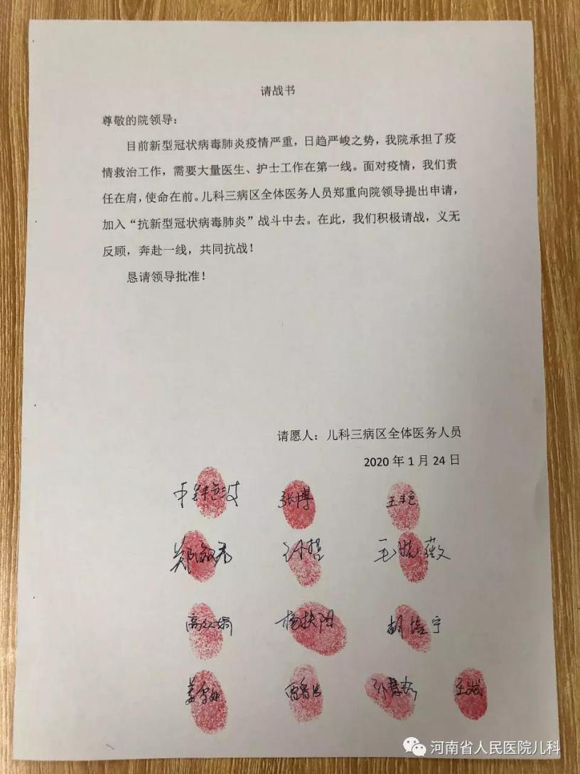 杨扶阳、王倩萌,河南省人民医院2018级儿科基地住院医师,现轮转于儿科三病区,杨扶阳第一时间在科室组织的请战书上按下自己鲜红的手印表达无畏的决心。王倩萌春节后想尽办法返岗,在科室坚持值班,在疫情面前没有退缩,没有掉队,每天早上7点半到达科室开始一天的工作。她说“虽然由于疫情影响,目前病人总数量不多,但在儿科三值班有点特殊,因为重症病人相对来说比较多,每次值班的任务比较艰难,对于从PICU转出来的爆发性心肌炎的患儿,每当夜班时都会提心吊胆,生怕再次出现心率失常而紧急抢救。”即使这样,她们也没有退缩。