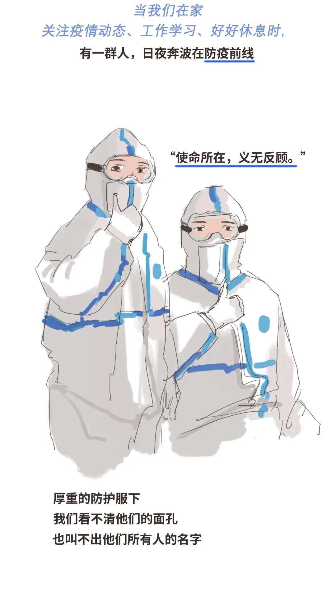 没有生而英勇,只是选择无畏;不为了天下人感动,只是想无愧于白衣天使的使命;不负韶华,以梦为马;武汉加油,中国加油;武汉,全国人民是你们坚强的后盾,抗“疫”之路,我们在一起!