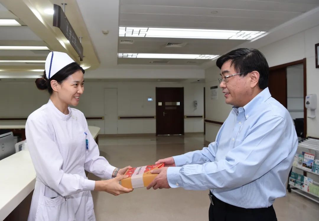 院长邵凤民携职能部门负责同志先后深入老年医学科和华中阜外医院,亲切慰问住院患者和医务人员,送上月饼,更送上浓浓的关怀和节日的祝福。