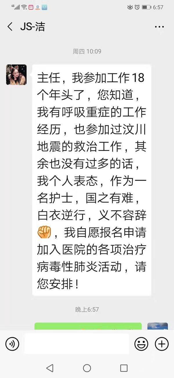 说到家人的支持,她很激动,“我婆婆曾经参加了2003年抗击非典救援工作,所以她特别支持我的做法。有他们的支持,我将以我所学援助湖北。”