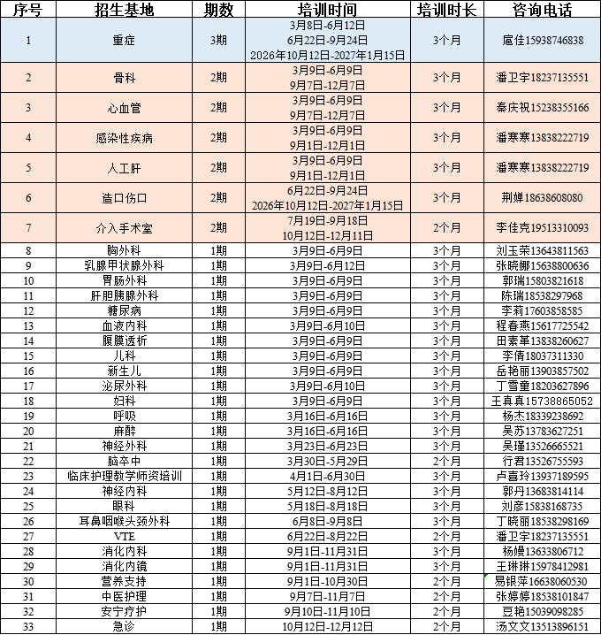 为贯彻执行公立医院高质量发展促进行动建设人才队伍要求,提高人民群众健康水平,助力健康中国建设,河南省人民医院拟启动2026年院级特色专科护士培训基地招生工作。具体安排如下: