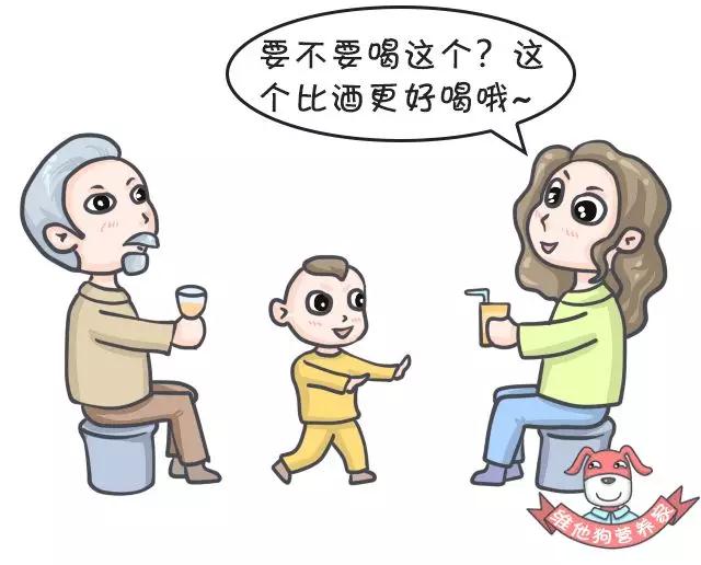 误区1:少量喝点酒没关系 这是小概率事件,我们又不傻,谁会给孩子喝这么多酒?不就是拿筷子蘸下尝一点嘛!有什么可大惊小怪的? 俗话说,三岁看一生,小时候的生活习惯可能会影响孩子一辈子。 而小孩就是大人的影射,所有的不良习惯都是从大人那里学的。 所以笔者严肃地告诉你,你的逗酒行为,就是在为祖国培养未来的酒鬼!